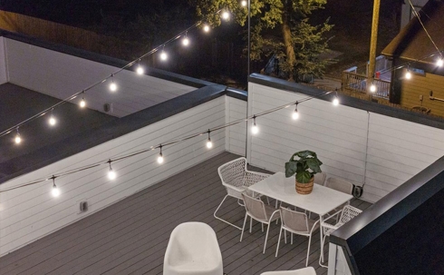 Another deck lighting idea is to use string lights. These are similar to festoon lights but are smaller and more delicate in appearance. String lights are often used to create a soft, romantic ambiance—the perfect deck lighting for the holidays.