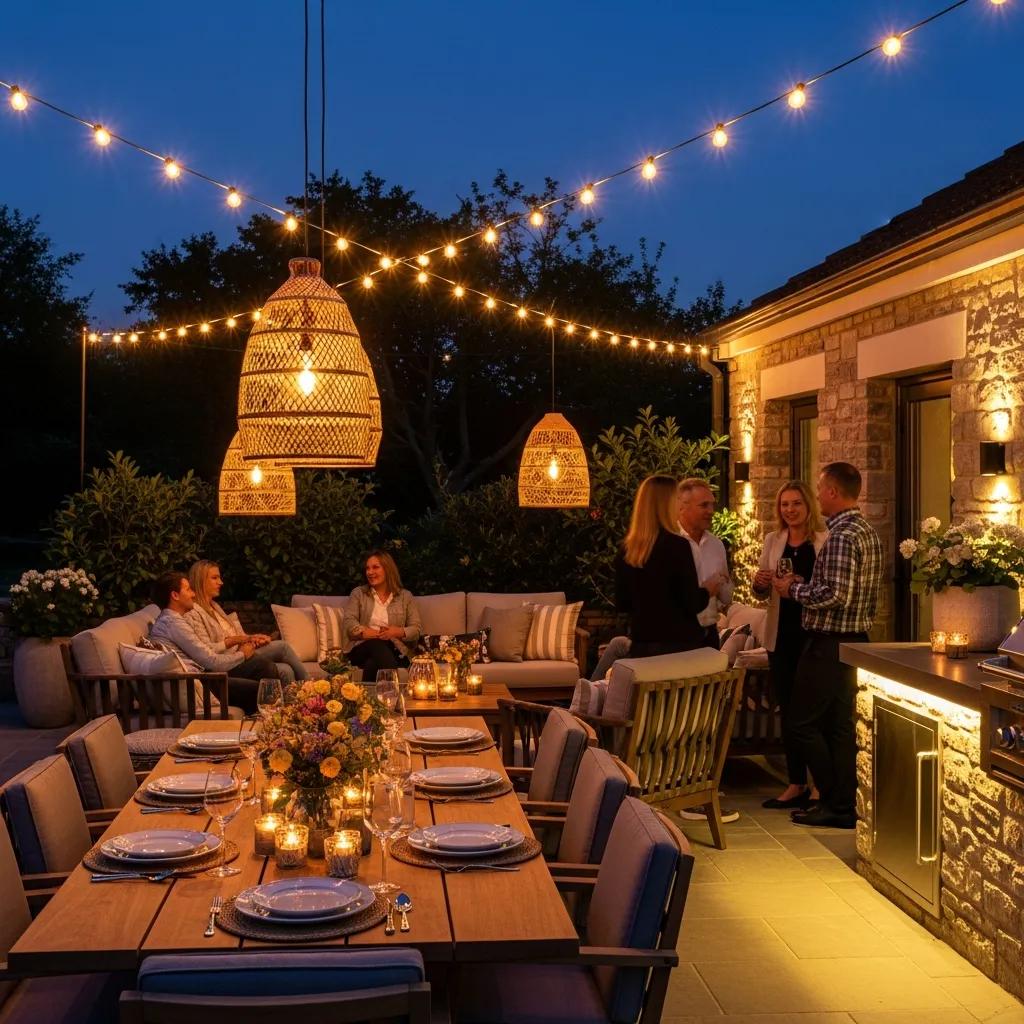 Warm white (2700K–3000K) is recommended because it mirrors the color cues people associate with hospitality—soft amber light improves appetite perception and social comfort while masking minor blemishes in fabrics and surfaces. The underlying reason is human circadian and aesthetic response: lower Kelvin reduces blue content, which signals evening to the visual system and supports relaxation. Practical implementation pairs warm Kelvins with dimming and layered fixtures: overhead pendants for table definition, wall or step low-lights for navigation, and accent spots for planters or art. Selecting bulbs and fixture color temperatures together prevents mismatched tones that can break the immersive feel of an outdoor living room.