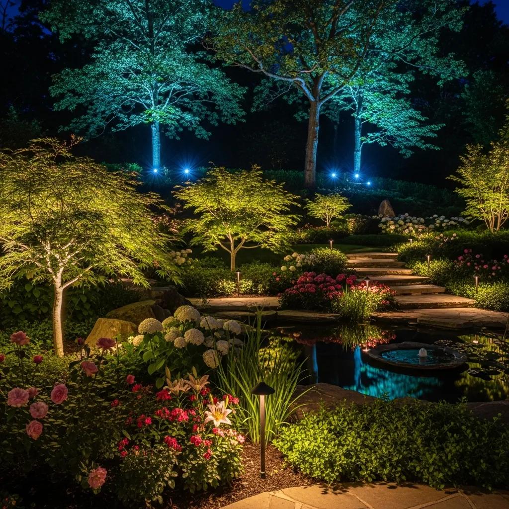 Flower beds typically benefit from 2700K–3500K depending on species and desired warmth—warmer Kelvins increase perceived saturation in reds and oranges, while neutral Kelvins preserve subtle pastel hues. For moonlighting—fixtures mounted high in tree canopies to simulate natural moon glow—designers often choose 3500K–4000K and use narrow-beam, well-aimed fixtures to mimic low-angle celestial light without harsh hotspots. Placement and angle matter: hang or mount fixtures 10–15 feet above the ground for gentle shadowing on paths and features, and use dimming to adjust mood for seasonal or event-based scenes. Thoughtful Kelvin pairing with beam control delivers believable, directional moonlight that enhances depth and safety simultaneously.