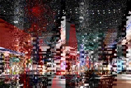 Seasonal lighting does not have to replace your brand style. Instead, it can sit on top of it. For example: